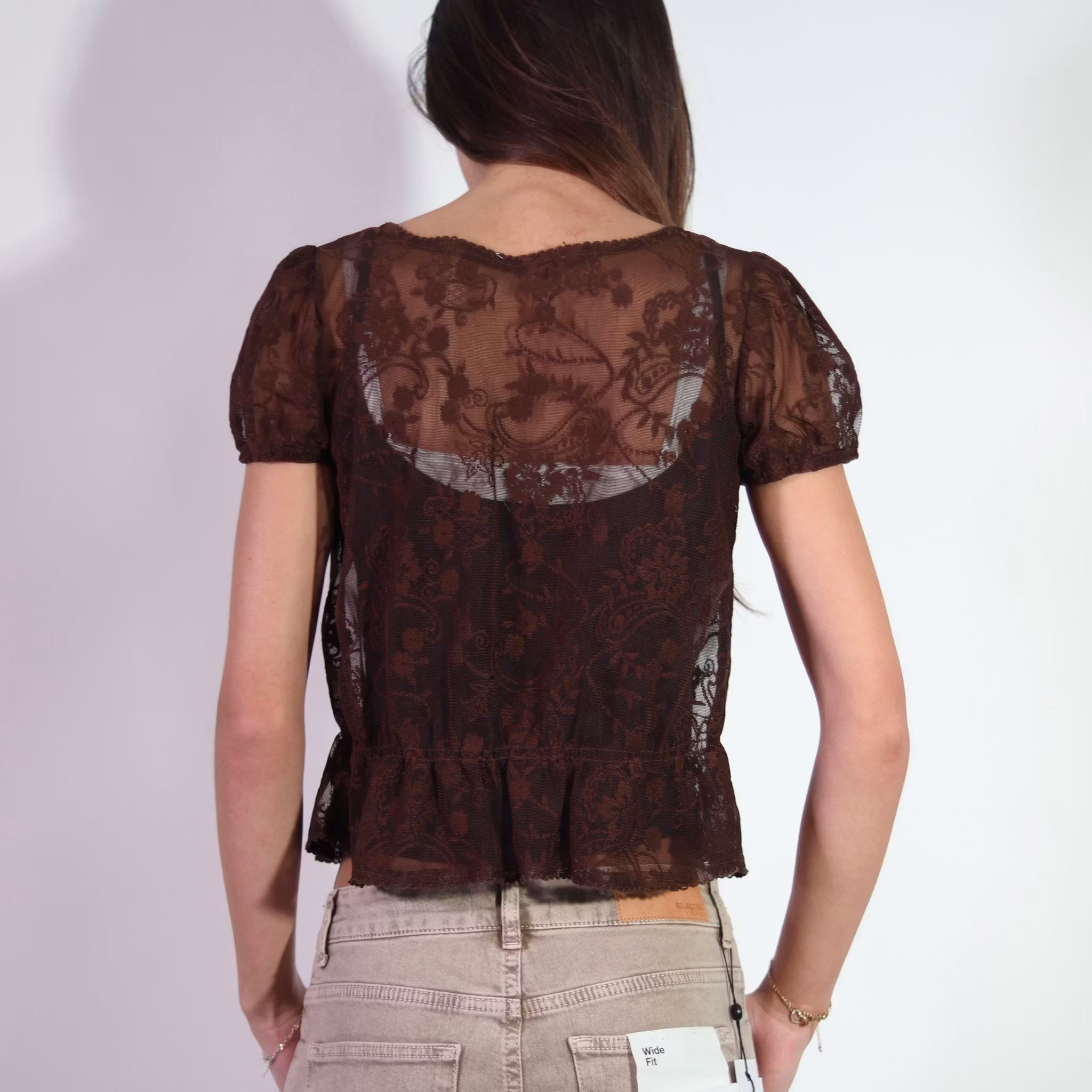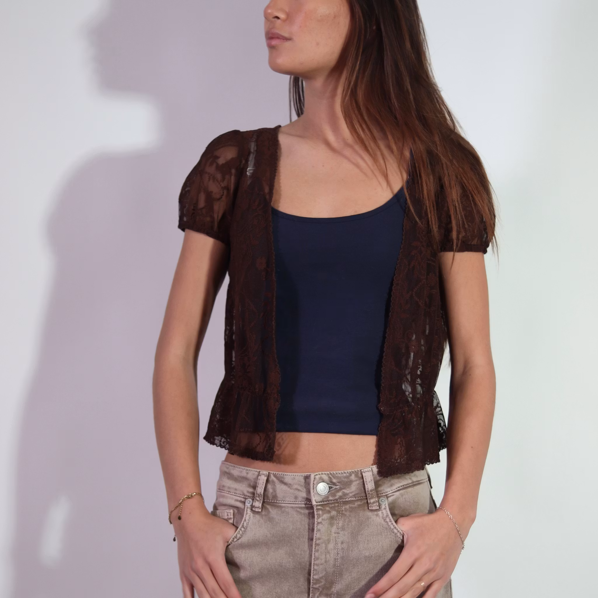 BROWN TRANSPARENT CARDIGAN (XS)